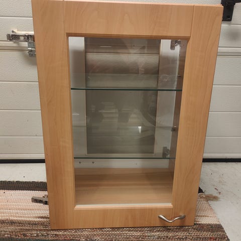 Myydään 2 puunväristä vitriinikaappia, jossa lasiovet ja hyllytaso. Kaappeja on kaksi kpl ja ne myydään yhdessä. Ilmoitetut mitat on per. 1 kaappi. Kaapit voi laittaa vierekkäin tai päällekkäin. Kaapissa säilytetty laseja. Vain nouto. Maksu käteinen tai mobile pay.