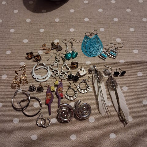 Settinä kuvan rihkama korvikset. 29 paria.