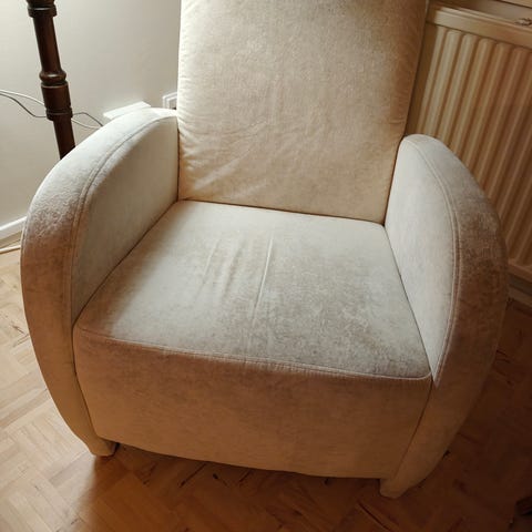Valehtelisin jos väittäisin tuolin olevan kuin uusi, päinvastoin tuoli on varmasti takamuksia kannatellut jo melko pitkän aikaa. Verhoilukin on jo nähnyt parhaat päivänsä mutta senhän voi toki uusia.