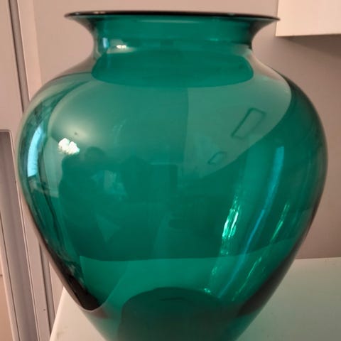 Kirkaslasinen maljakko, korkeus n. 19cm, pohjan halkaisija n. 18cm