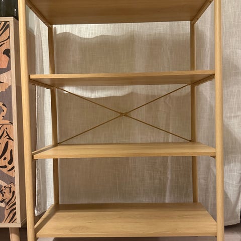 Hyväkuntoinen Jyskin pikku hylly. Ainut vika on puuttuva putken ns. muovitulppa. Näkyy kuvassa.