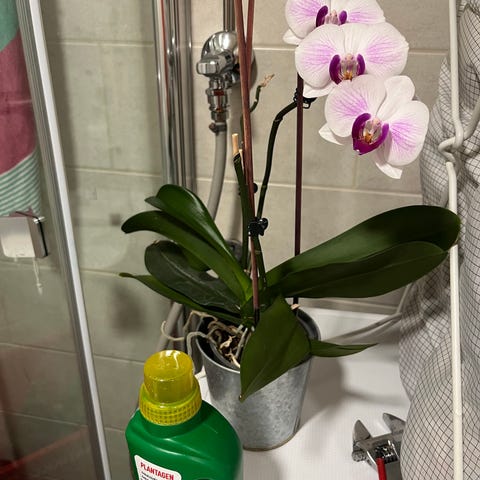 Ruukkuja on 2 kpl, lisäksi avaamaton orkideamulta ja pari tukikeppiä.