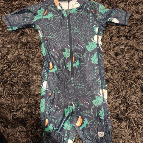 Reima Sunproof uima-asu lapselle, koko 92. Kokopuku, jossa lyhyet hihat ja lahkeet. Väri turkoosi, valkoiset hihat ja painatukset edessä. Edessä pitkä vetoketju helpottamassa pukemista. Materiaali nopeasti kuivuvaa, uima-asuihin tarkoitettua synteettistä kangasta. Soveltuu uimiseen ja vesileikkeihin.