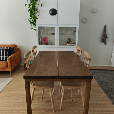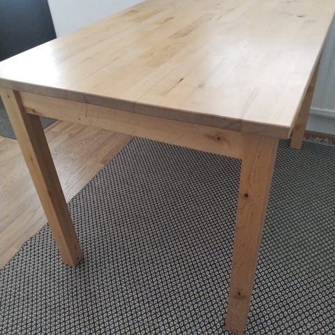 Ikea Ypperlig ruokapöytä 200×90. Kunto hyvä, jotain pientä jälkeä voi olla. Pöytä saarniviilua ja jalat massiivikoivua. Vain nouto.