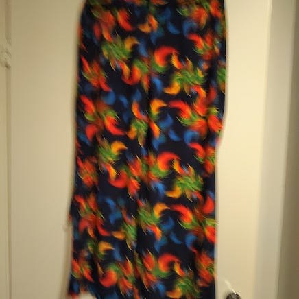 Naisten kivat puuvillahousut. Todella kivaa puuvillapopliinia. Hyvä kunto. Itse olen S kokoa ja minulle isot. M kokoiselle sopivat. L kokoiselle ehkä pienet. Vyötärö säädettävissä tarranauhoilla. Hinta 3 euroa. Kaupat Tampereen keskusta Metso kirjasto.