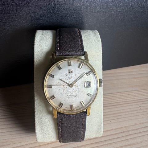 Hieno Tissot nyt myynnissä. Todella vähän käytetty. Ostettu Englannille kuuluvalta Gibralttarilta kello ja kultaliikkeestä. Ranneke avattuna n. 27 cm. Paristo loppu.