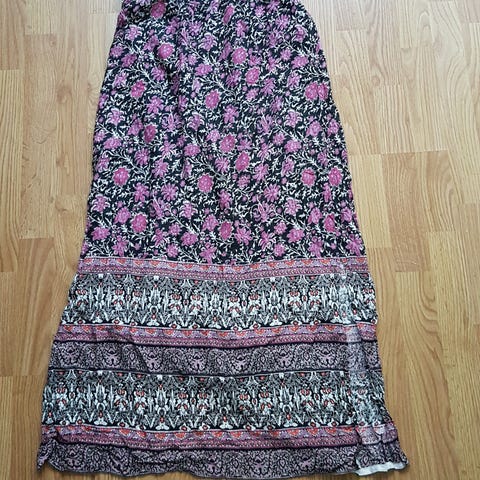 Cellbes naisten hame, koko 42. Väri musta. Materiaali polyesteri. Hameessa on pitsimäinen päällikangas ja yksivärinen vuori. Soveltuu arki- ja juhlakäyttöön. Malli on polvipituinen tai hieman polven alapuolelle ulottuva kuvien perusteella. Vyötäröllä kuminauha ja sivussa vetoketju. Hametta ei ole köytetty.