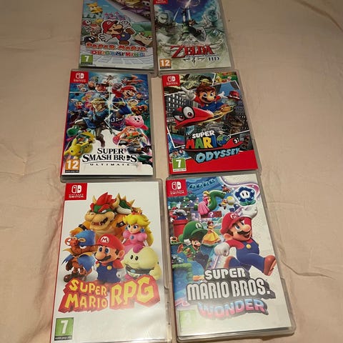 Kaikki pelit ovat fyysisinä versioina Nintendo Switch -konsolille. Sopii Nintendo Switch -järjestelmiin, joissa käytetään Switch-pelikortteja. Ikärajasuositukset: Super Mario Odyssey ja Super Mario Bros. Wonder PEGI 3, Luigi’s Mansion 3 PEGI 7.