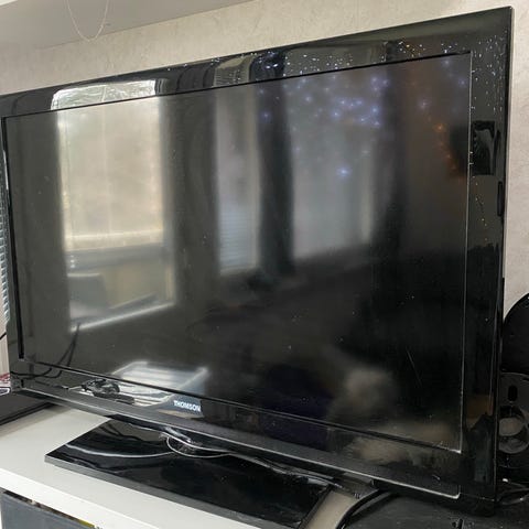 Tv ei mikään ihan kevyt, kahdestaan kannettava.