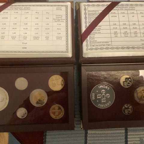 Suomen Rahapajan 2004 rahasarja. Proof-laatuiset, mukana hopeinen jetoni.