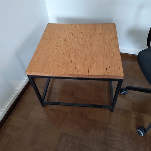 Käsin maalattu sohvapöytä, päällystetty venelakalla.