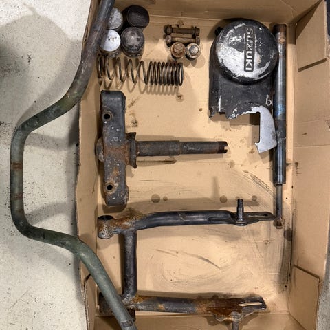 Suzuki pv n alkuperäisiä pakoputkia, sylintereitä, malosseja x2, vakioläpättömiä x 2, magneeton koppas, kytkinkoppaa, vannelautasta yms. Tee tarjous koko kasasta tai myös osa kerrallaan voin myydä.! Toridiili onnistuu myös tai nouto.