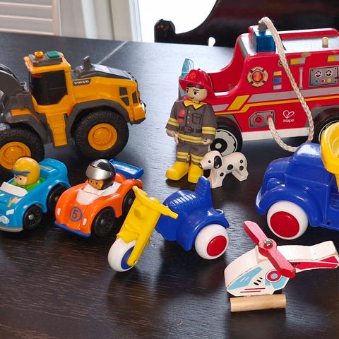 Hyväkuntoinen koulubussi lajittelulelu. Pyörillä liikkuva bussi ja kuusi erimuotoista palikkaa. Ikäsuositus 18 kk +.