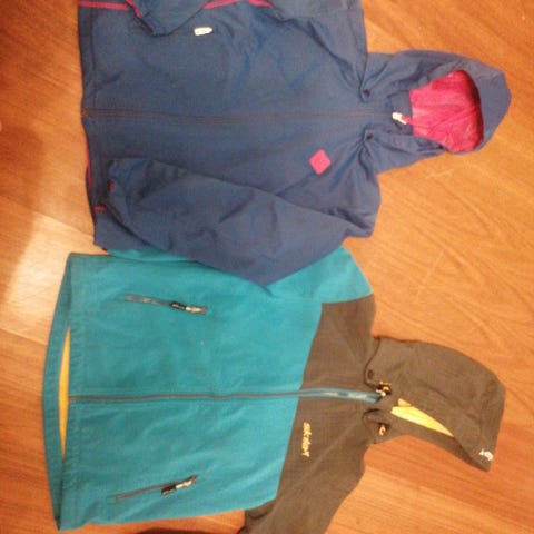 Didriksons oranssi parkatakki irrotettavalla karvahupulla, koko 140cm (reilukokoinen, meillä otetiin käyttöön 146cm ulkovaatteissa). Takissa hihansuissa sisemmät resorit ja vyötäröllä lumilukko, jonka saa vetoketjulla kokonaan takista irrotettua. Kunto mielestäni ok käytetty. Kulumaa etutaskuissa ja helmassa, hihansuissa tummentumaa mikä ei lähtenyt kevytpesussa, sekä selkäpuolella vasemmalla.