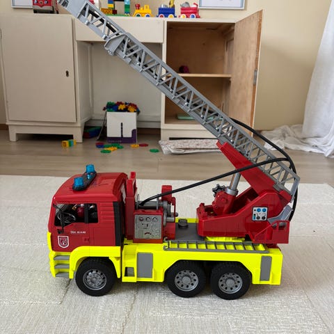 Myydään kohtalaisessa kunnossa oleva Bruder Scania paloauto, jossa on käytön jälkiä. Paloautossa on avautuvat ovet peileineen, korkeat palotikkaat ja vesiletku. Vesiletkun kampi on mennyt rikki, mutta letkun saa siitä huolimatta rullattua. Vesipumppu toimii eli letkusta tulee vettä.