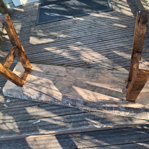 Käyttämätön, vanhoista höylätyistä lattialaudoista tehty penkki/taso.