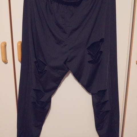 Kerran pidetyt ja pestyt housut, todettu isoksi. Koko 3XL, vy. 48cm ja joustaa reippaasti. Takaa täysin mustat.
