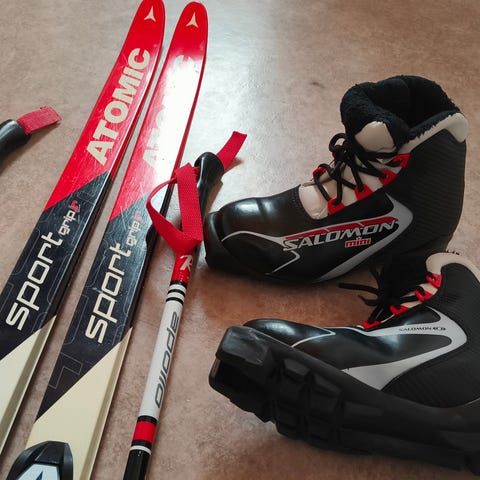 Tästä pienelle lapselle erinomainen ensisuksisetti perinteistä hiihtotyyliä varten.