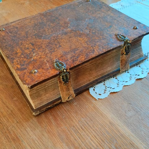 Vanha suomenkielinen Pyhä Raamattu, painovuosi 1849. Kirjassa on paksut, kuluneet nahkakannet metallisilla salpojen kiinnikkeillä sekä selässä kohokuvioidut selkäjuovat. Sisäsivuilla on käsinkirjoitettuja merkintöjä omistajista ja perinnöstä 1800–1900-luvuilta. Teksti on kaksipalstaisena fraktuura-tyyppisellä kirjasimella. Kirja soveltuu esimerkiksi historialliseksi lähteeksi, keräilykohteeksi tai sisustuselementiksi vanhaa kirjaa arvostavalle.