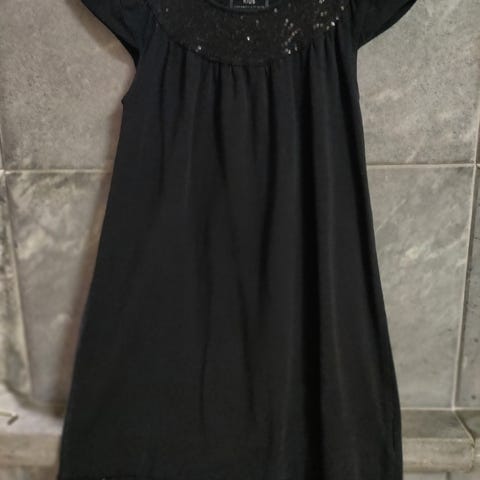 House mekko tytöille, koko 134. Musta puuvillamekko, jossa valkoinen joutsainkuviointi. Pitkähihainen malli, pyöreä pääntie. Materiaali puuvillaa, sopii arkeen ja vapaa-aikaan.