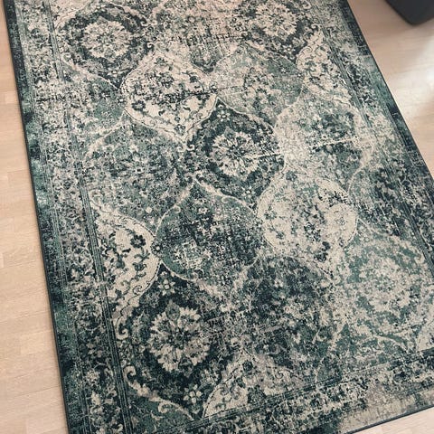 Kelim-kuvioinen hieno matto. Pieniä käytön jälkiä, mutta mielestäni siisti suoraan käyttöön. Pyydä kuva. Tarkistusmittaan vielä. Ilmeisesti käsinkudottu? Hakusana: katrup.