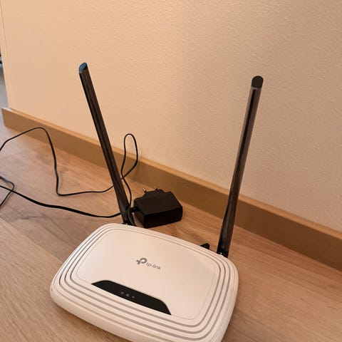 TP-Link Archer C20 langaton reititin. Laitteessa on kolme ulkoista antennia ja useita Ethernet-portteja lähiverkkoyhteyksille. Mukana virtalähde. Soveltuu kodin tai pienen toimiston verkkoyhteyksien jakamiseen langattomasti ja kaapelilla.