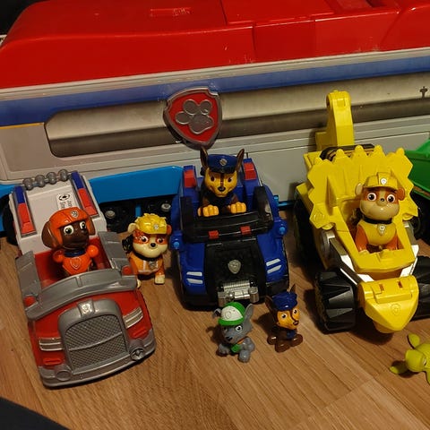 Myydään setti ryhmähau-leluja. Hahmoja, autoja ja radiopuhelimia. Rollen autossa soi musiikki ja valot vilkkuu, kaksi radiopuhelinta toimii pattereilla ja yksi on vaan lelu.