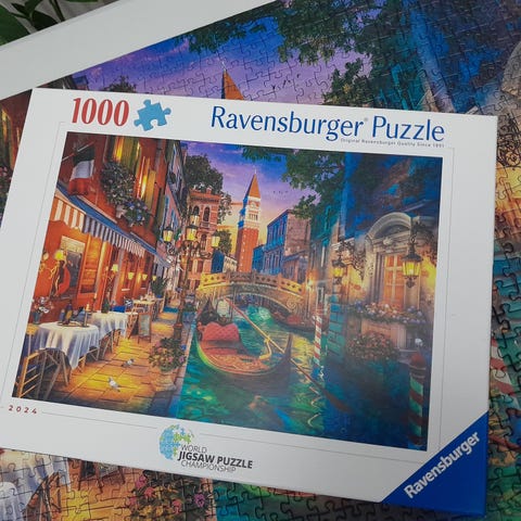 Ravensburger Paris-katu on 1000 palan palapeli, jossa on värikäs kaupunkimaisema Pariisista. Kuvassa näkyy muun muassa Eiffel-torni, leipomo, katuvilinää, autoja ja polkupyöriä. Palapeli kerran kasattu.