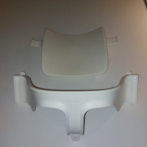 Stokke babyset, eli syöttötuolin etukaari ja selkänoja punainen