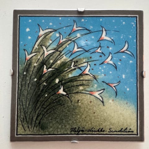 Keraaminen, koriste seinälaatta. Ollut seinässä kiinni.