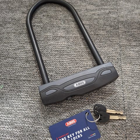 Abus U-lukko polkupyörälle. Väri musta. Mukana kaksi avainta. Soveltuu esimerkiksi pyörän runkolukitukseen kiinteään telineeseen tai muuhun kiinteään kohteeseen. Runko on teräksinen ja päällystetty muovilla, joka suojaa pyörän runkoa naarmuilta.