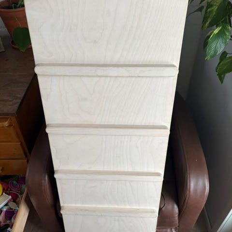 Kiipeilytelineestä irrotettu liukumäki. Elämää ja säitä nähnyt, mutta toimiva vielä esimerkiksi johonkin diy leikkipaikkaprojektiin.