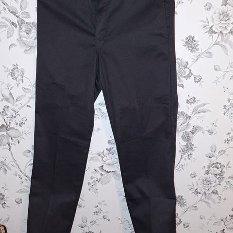 Dickies slim fit -chino-housut miehille. Väri musta. Koko M, vyötärö W32 ja lahkeen pituus L32. Materiaalina polyesteri. Housuissa on vyölenkit, vetoketjukiinnitys ja takataskut. Malli on kapealinjainen (slim fit) ja sopii arki- ja vapaa-ajan käyttöön.