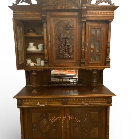 l 138, k.70 ja s.30cm kolmella ovella ja 9kpl 12,5cm leveitä laatikoita.