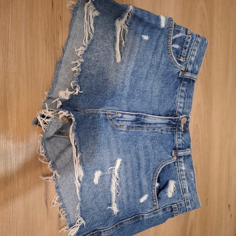 H&M farkkushortsit naisille. Koko L. Sininen denim-materiaali. Klassinen viisitaskumalli, vyölenkit, vetoketju- ja nappikiinnitys edessä. Lahkeissa käännetty helma. Soveltuu arki- ja vapaa-ajan käyttöön.