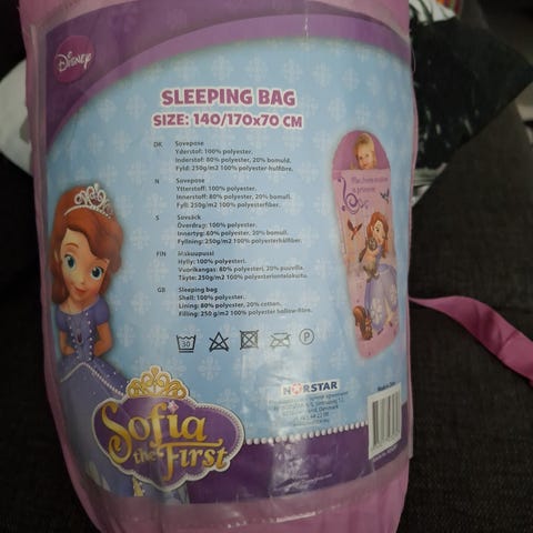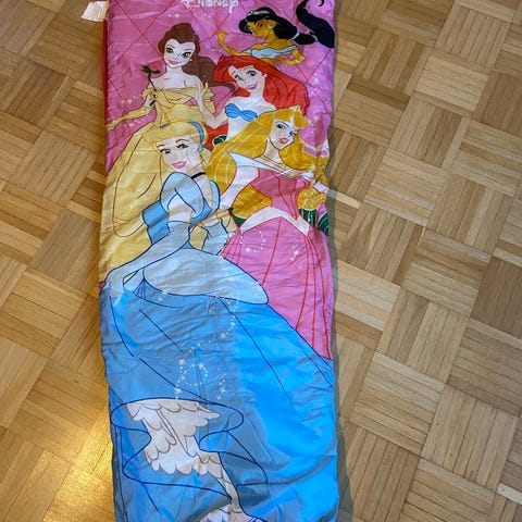 Disney Prinsessat makuupussi lapsille. Makuupussissa on pinkki pohjaväri ja kuvituksena useita Disney-prinsessoja.