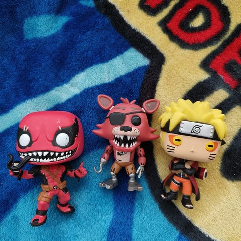 Kuvan keräilyhahmot, mm. Disney figuurit.