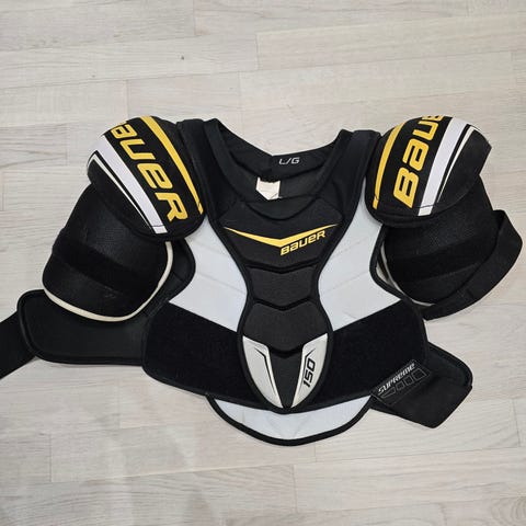 Myydään hyväkuntoinen Bauer 3x rintapanssari. Koko: SR L. Nouto Espoosta tai postitus Toridiilillä.