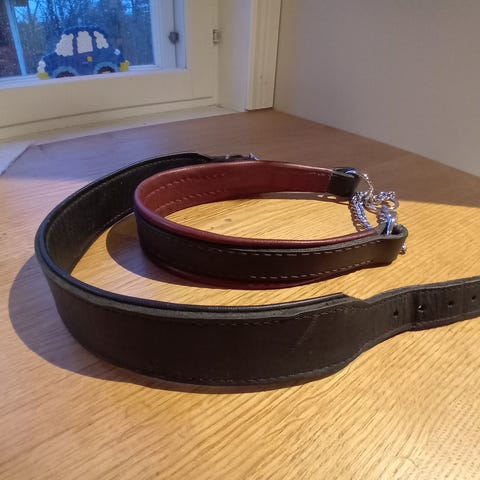 Ei juurikaan ollut käytössä mutta säilytyksessä näemmä tullut hieman kulumaa strasseihin. Ehjä siisti panta. Pituus piikistä viimeiseen reikään 46cm