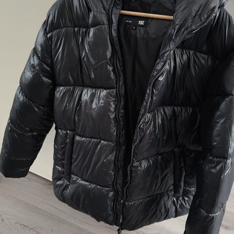 Musta kiiltävä hupullinen toppatakki koko L. Takki on uusi ja sitä on vain sovitettu. Nouto ja maksutapa käteinen
