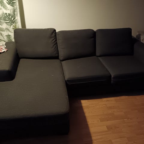 Uuden sohvan tieltä pois. On elämisen jälkiä, mutta vielä käyttökelpoinen. Äärettömän mukava löhöilysohva! Menee nopeimmalle noutajalle.