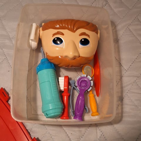 Yksi hammasporauslaite (sininen ja keltainen) ei toimi - ehkä paristot on vaihdettava tai ehkä se on rikki - en tiedä.