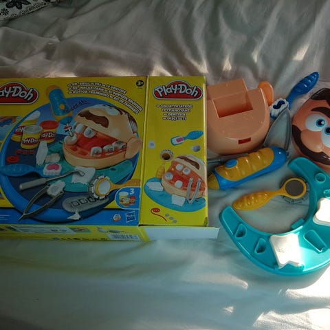 Myydään hyväkuntoinen, kuvan mukainen Hasbro Play-Doh 2 hämmäslääkärin leikkisettiä (Drill 'n Fill Dentist).