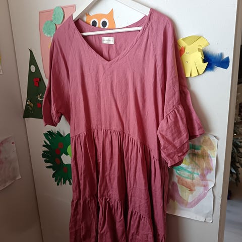 Nanso Sarastus pellavamekko, lyhyt malli. Koko M. Väri pinkki. Materiaali 100 % pellavaa.