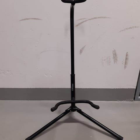 Myydään Clifton kitarateline musta. Säädettävä, lattialle asetettava teline kitaralle. Metallirunkoinen teline, jossa pehmustettu kaulatuki ja tukijalat soittimen pitämiseksi pystyssä. Soveltuu useimmille täysikokoisille kitaroille kotikäyttöön tai harjoitustiloihin.
