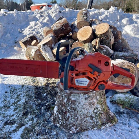 Saha on vuodelta 2020 ja toimii erittäin hyvin, käynnistyy nätisti ja tehoa riittää. Ketjuöljyn pumppu toimii normaalisti ja saha leikkaa hyvin myös teroitetulla ketjulla. Kahvanlämmitys toimii moitteetta.