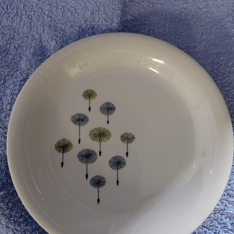 Arabia lautanen, jossa sininen kukkakuvio reunan ympäri. Lautanen sopii arki- ja kattauskäyttöön eri vuodenaikoina. Materiaali vaikuttaa olevan keraaminen tai posliininen. Väri on pääosin valkoinen sinisillä koristekuvioilla. 5kpl