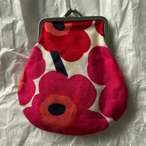 Marimekko kangas kukkaro sydänkuosilla naiset