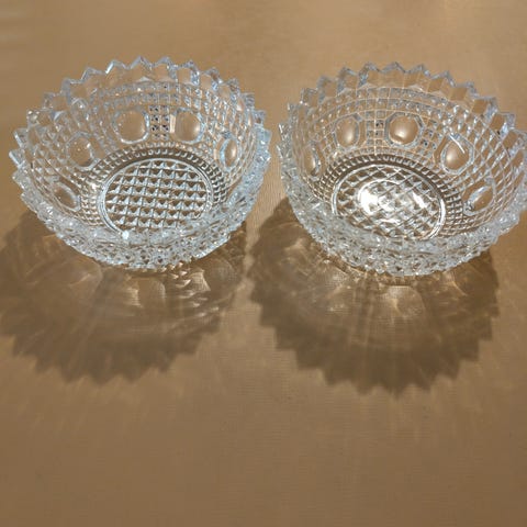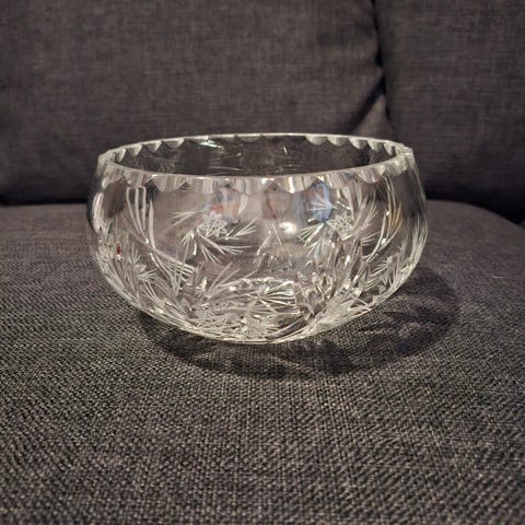 Kristalli vati/kulho. Muutamasta kohdasta lohjennut palaset näkyy kuvassa