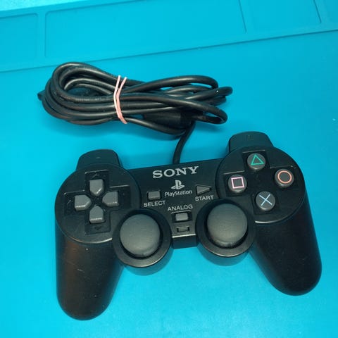 Alkuperäinen Sony PlayStation 2 DualShock 2 -ohjain (SCPH-10010). Puhdistettu ja testattu: kaikki napit, analog-tatit, D-pad ja rumble toimivat. Käytön jälkiä näkyvissä, muuten siisti ja ehjä. Nouto tai postitus. Kysy lisää